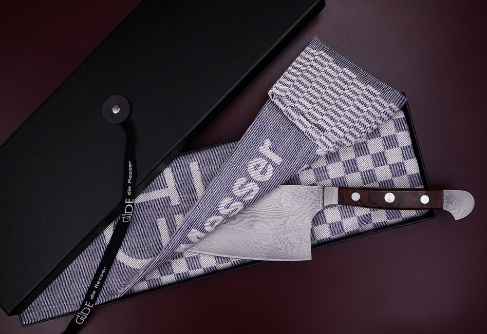 Das Güde Damaststahl Chai Dao Messer mit 16 cm Klingenlänge.