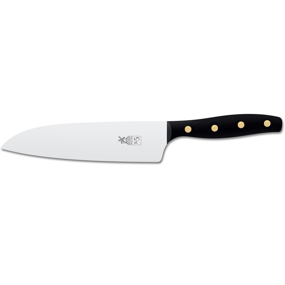 Hier haben wir die sehr effiziente Klingenform des japanischen Gyoto-Kochmessers zugrunde gelegt und mit unserem ausbalancierten K-Griff kombiniert. Für klassische Kochmesserarbeit.