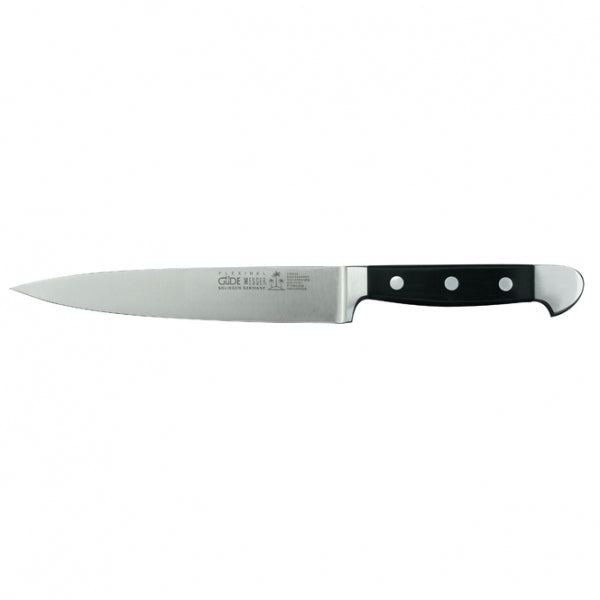 Aus einem Stück handgeschmiedete Klinge aus Chrom-Vanadium-Molybdän Messerstahl. Weiterverarbeitung in über 30 manuellen Arbeitsgängen. Der feinpolierte Griff besteht aus robustem und pflegeleichtem Hostaform und ist spülmaschinenfest. Rostfrei eisgehärtet, handgeschärft. Die Messer der Alpha-Serie erfüllen die Anforderungen der Richtlinien an Messer für den Einsatz in der Gastronomie und bieten innerhalb der Güde-Serien die größte Modellvielfalt.