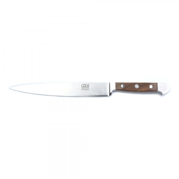 Das Güde Alpha Walnuss Schinkenmesser mit 21 cm Klingenlänge.