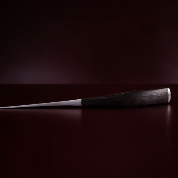Der Griff aus Räuchereiche schafft eine natürliche Verbindung zwischen Hand und Stahl und verleiht dem Messer ein warmes, edles Erscheinungsbild. Durch die perfekte Balance zwischen Griff und kurzer Klinge fühlt sich das Messer besonders leicht und kontrolliert an. Ein unverzichtbares Werkzeug für alle, die Wert auf exakte Schnittergebnisse legen.