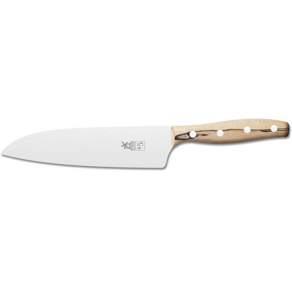 Hier haben wir die sehr effiziente Klingenform des japanischen Gyoto-Kochmessers zugrunde gelegt und mit unserem ausbalancierten K-Griff kombiniert. Für klassische Kochmesserarbeit.