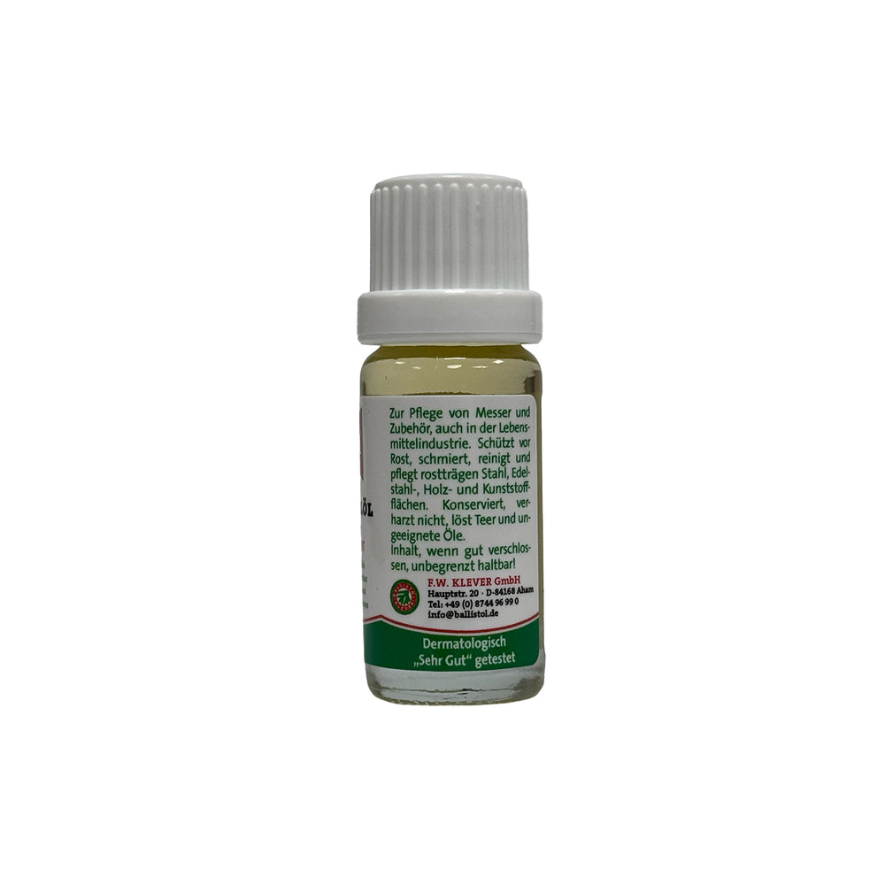 Ballistol ist leicht alkalisch und neutralisiert zuverlässig die Wirkung milder Säuren aus Lebensmitteln oder von Fingerabdrücken. Es wirkt desinfizierend, besitzt eine hervorragende Reinigungskraft und schützt die Klinge effektiv vor Korrosion. Ein weiterer entscheidender Vorteil: Ballistol ist lebensmittelgeeignet und vollkommen unbedenklich. Damit eignet es sich ideal zur Pflege und zum Werterhalt hochwertiger Kochmesser – insbesondere von Carbonstahlklingen.